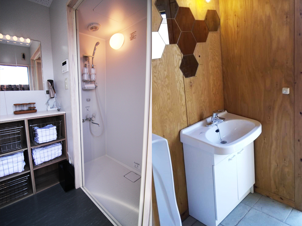 | 施設には24時間好きな時に体を流してほしいという思いで、敢えて時間制限のある風呂場を導入せず、24時間利用可能なシャワーを取り入れております。 |
