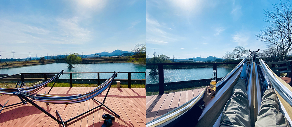 | 圧倒的な大きさ、強度を誇る自立型ハンモック。大柄な人でも安心してご利用いただけます。ハンモックに座って空を眺めるも良し、湖畔を眺めるも良し。格別なシエスタをお楽しみください。全米NO1の使い心地を是非お楽しみください。 | |