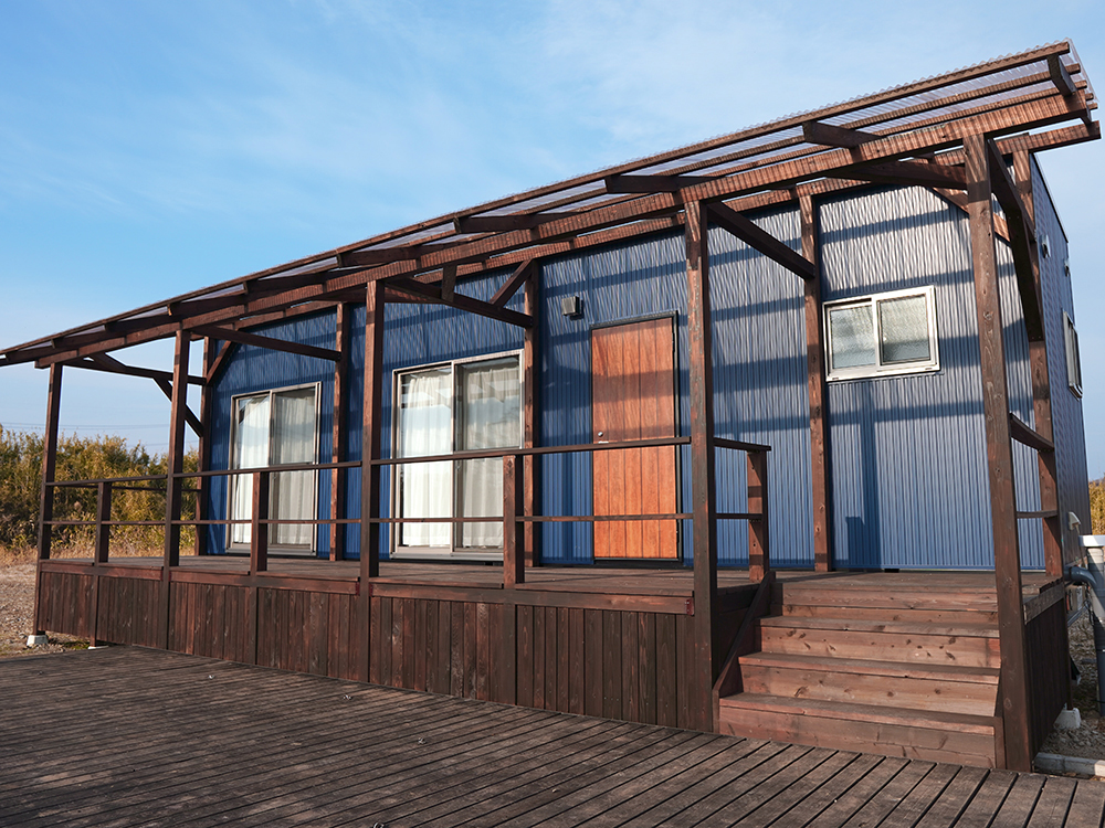 | 「機能的」「快適」「スマート」をコンセプトとしたテーラーメイドトレーラーハウス 耐熱・耐火も兼ね揃え、プラズマクラスター内蔵型冷暖房完備。 テラスには、小さなスペースでは無く、10m×6mの大型ウッドデッキを設置。 寝室には、オーダーメイドキングサイズロング(幅180×長さ205)を2台常設 世界的最上級ホテルのスィートルームにも導入されているマットレスで快適な睡眠をお約束いたします。 |